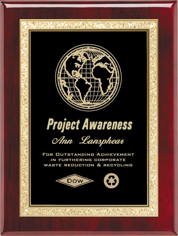 This elegant rosewood plaque showcases a lustrous piano finish that catches the light beautifully. The rich wood base is complemented by a sophisticated marble engraving plate framed with an ornate Florentine border, creating a timeless piece perfect for recognizing achievement or commemorating special occasions.