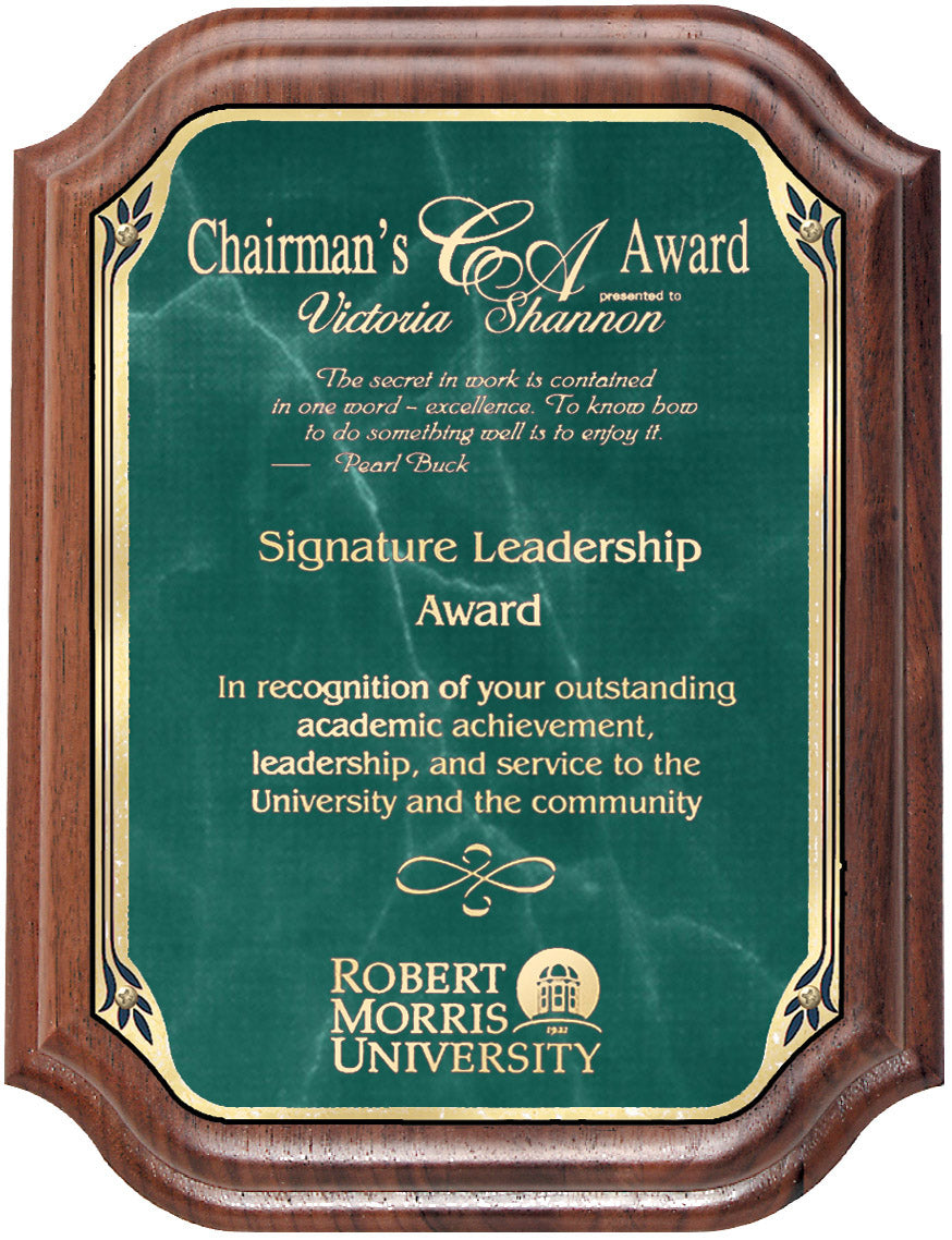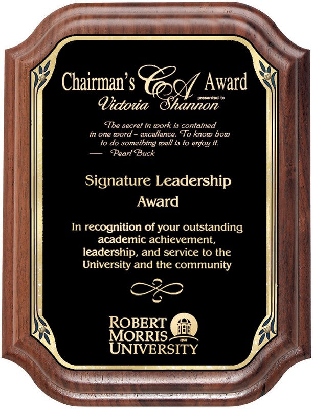 A distinguished recognition piece crafted from authentic walnut wood, the Ovation Collection plaque delivers timeless elegance for commemorating achievements. Its rich grain and warm finish create an impressive display that honors accomplishments with understated refinement. Perfect for corporate recognition, academic milestones, or personal accolades.