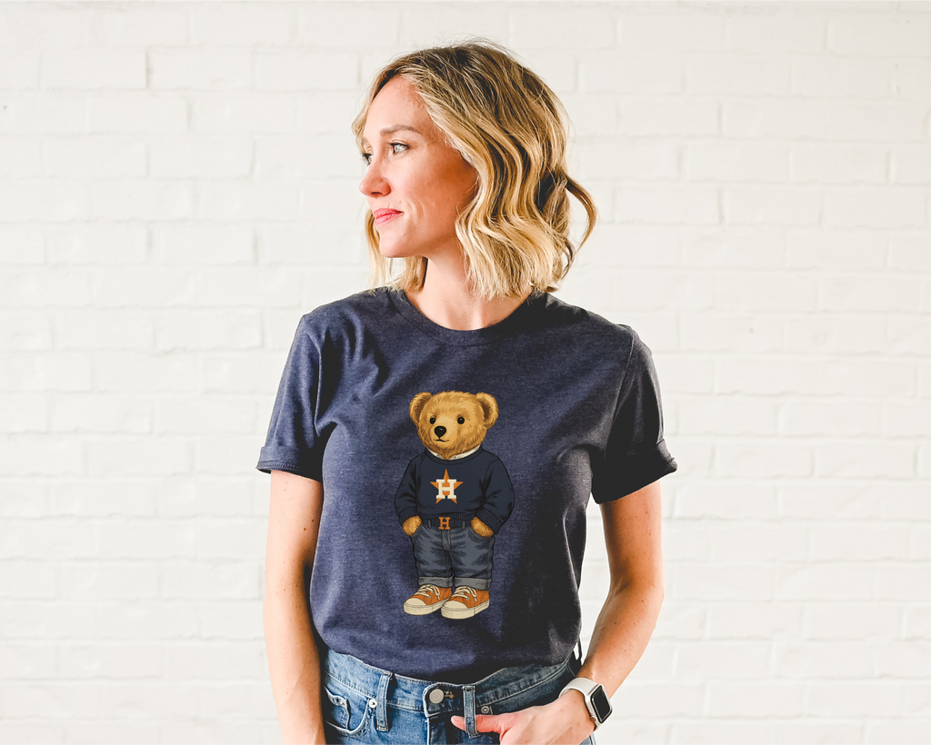 The Polo Bear Astro Tee blends laid-back comfort with classic Houston spirit, featuring a stylish polo bear graphic in iconic navy and orange tones. Designed for effortless wear, this ultra-soft tee pairs perfectly with denim, shorts, or layered under your favorite jacket for an easy gameday or casual look.